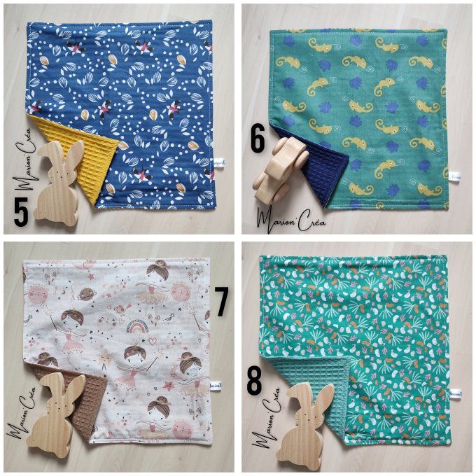 Tissus : coton oeko-tex et coton nid d'abeille. Lavage à 30°C à 40°C. Ne pas repasser sur la personnalisation éventuelle en flex.